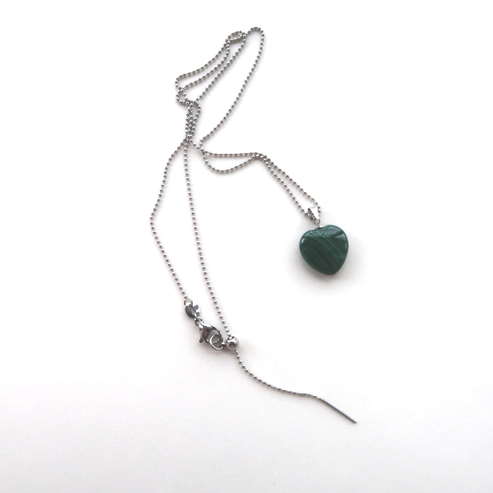 個性的な模様が魅力のハート型の天然石マラカイトを中央にあしらったネックレスです。