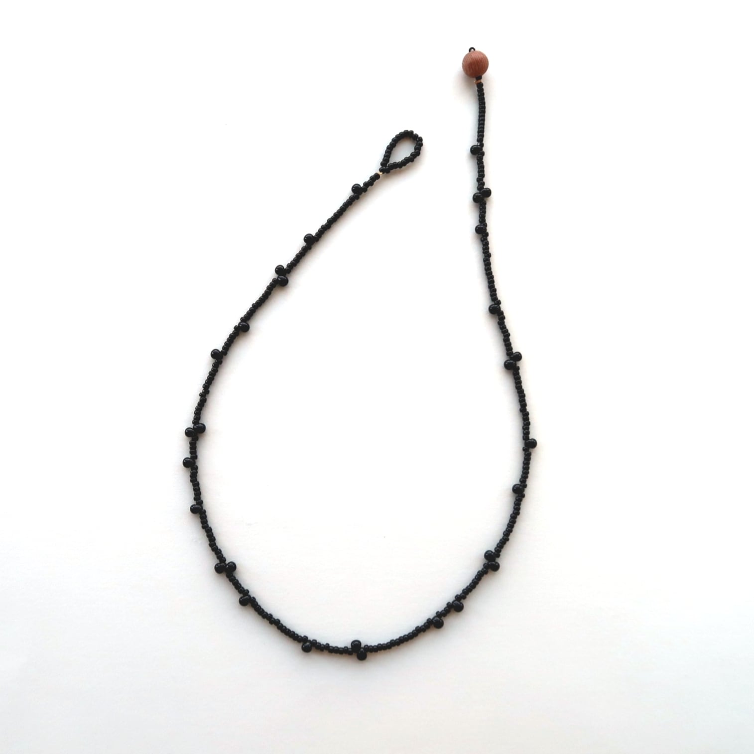 日本製ガラスビーズ、ローズウッド、真鍮/金メッキ