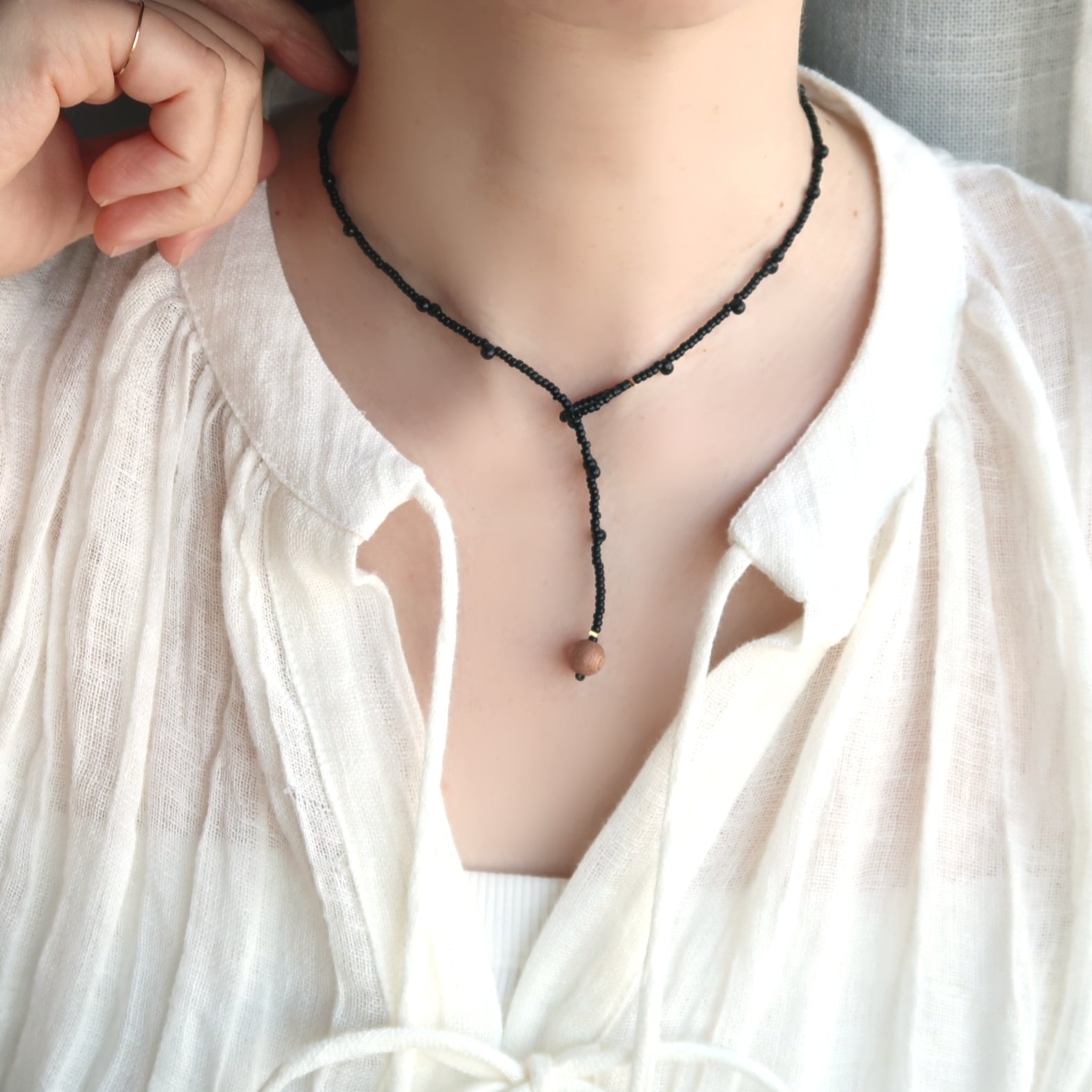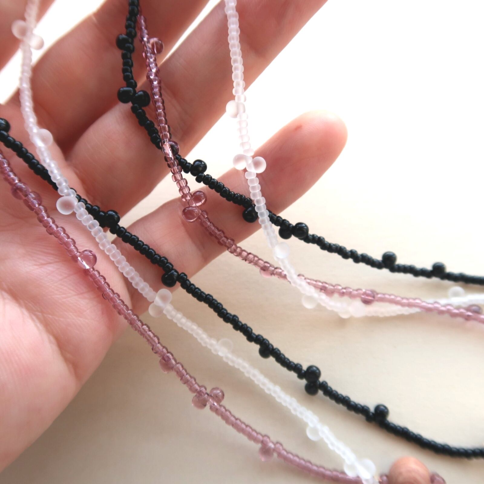 ぷつぷつとした黒のビーズのデザインが