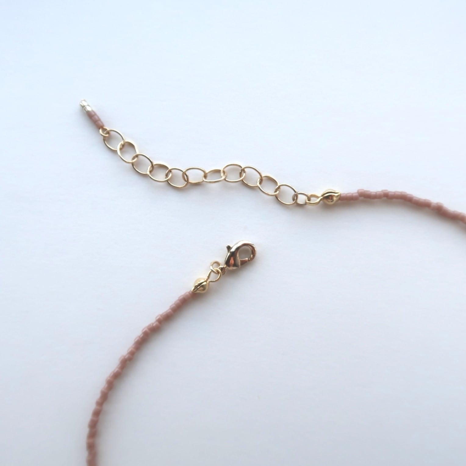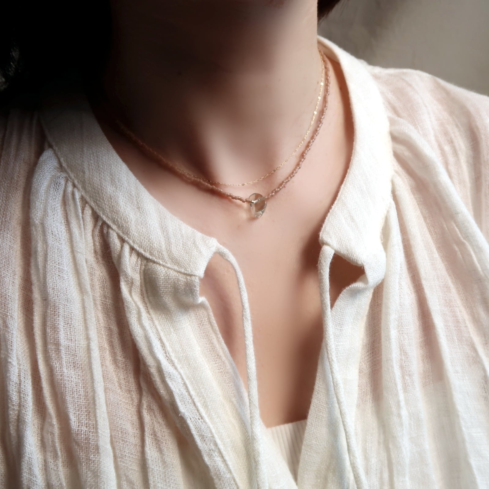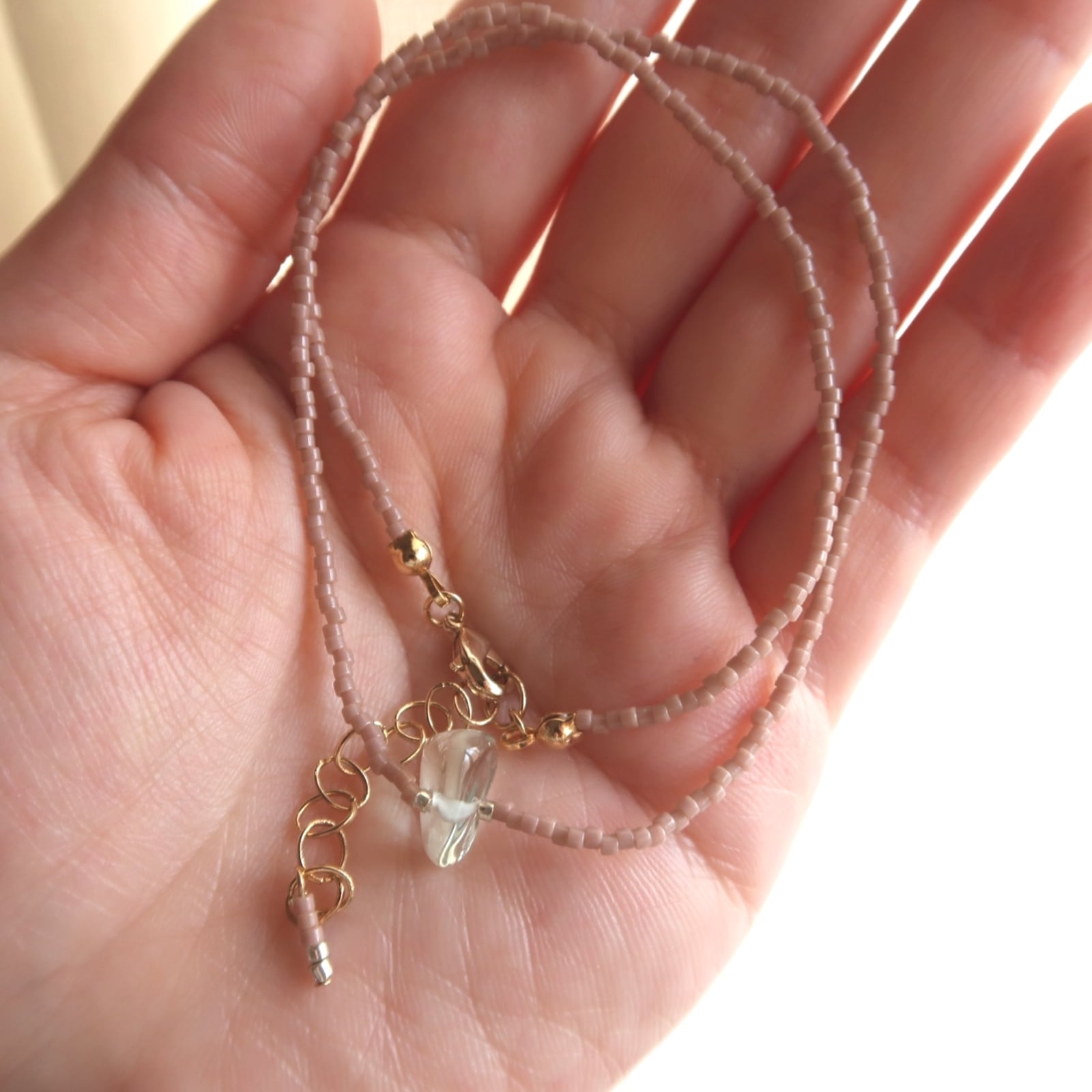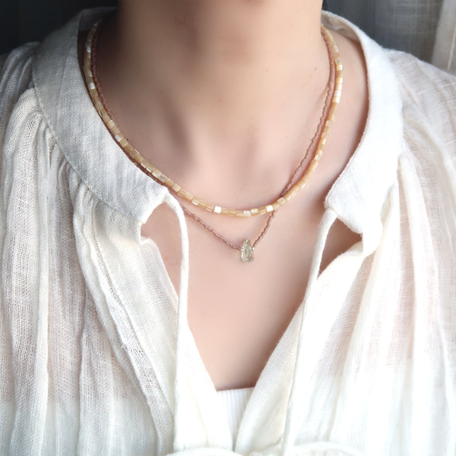 天然石〔グリーンアメジスト〕を中央にあしらったビーズネックレスです。