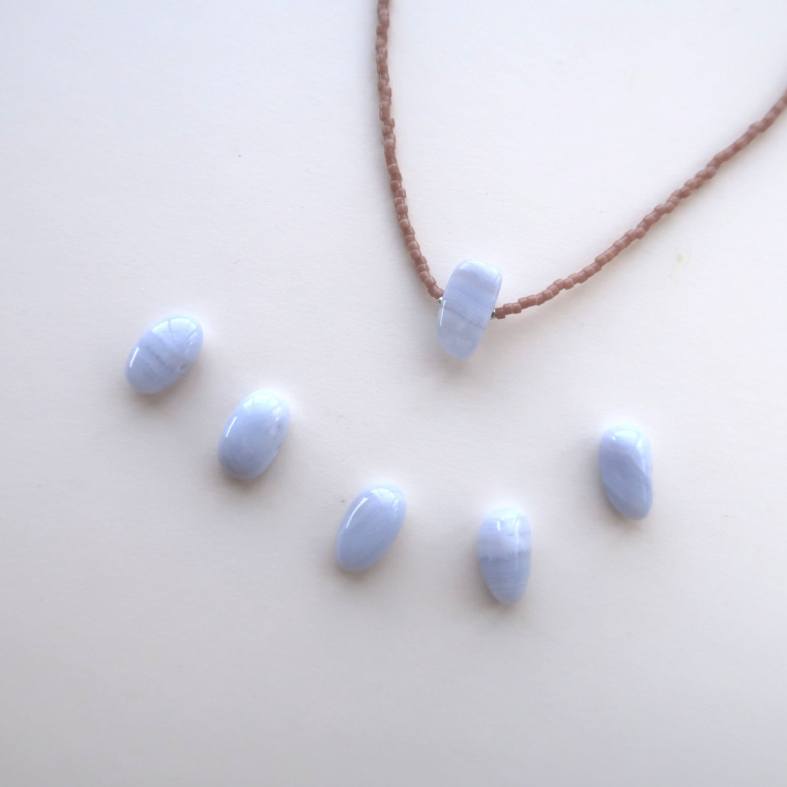 ブルーの淡い色味とコロンとした形が本当にかわいい天然石です。