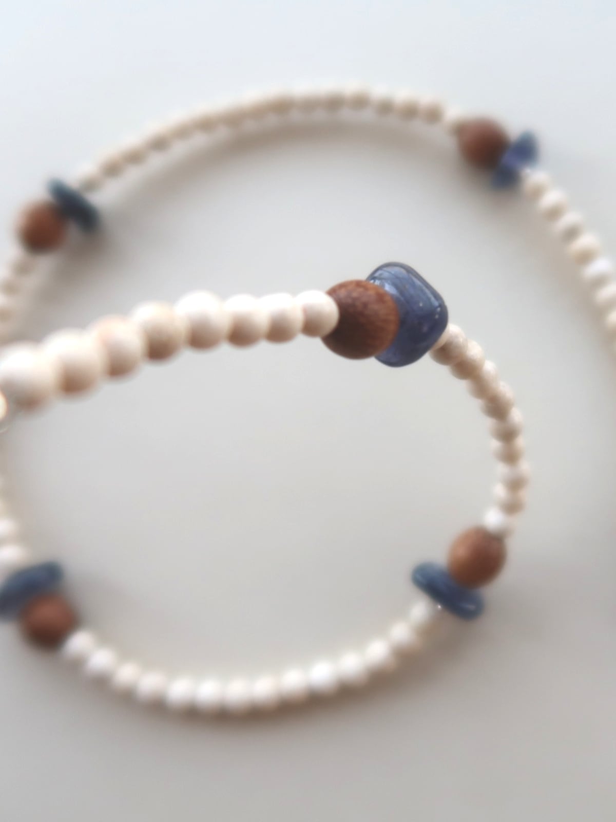 天然石リバーストーン、天然石アイオライト、カカオウッド、MIYUKIビーズ(ガラス)