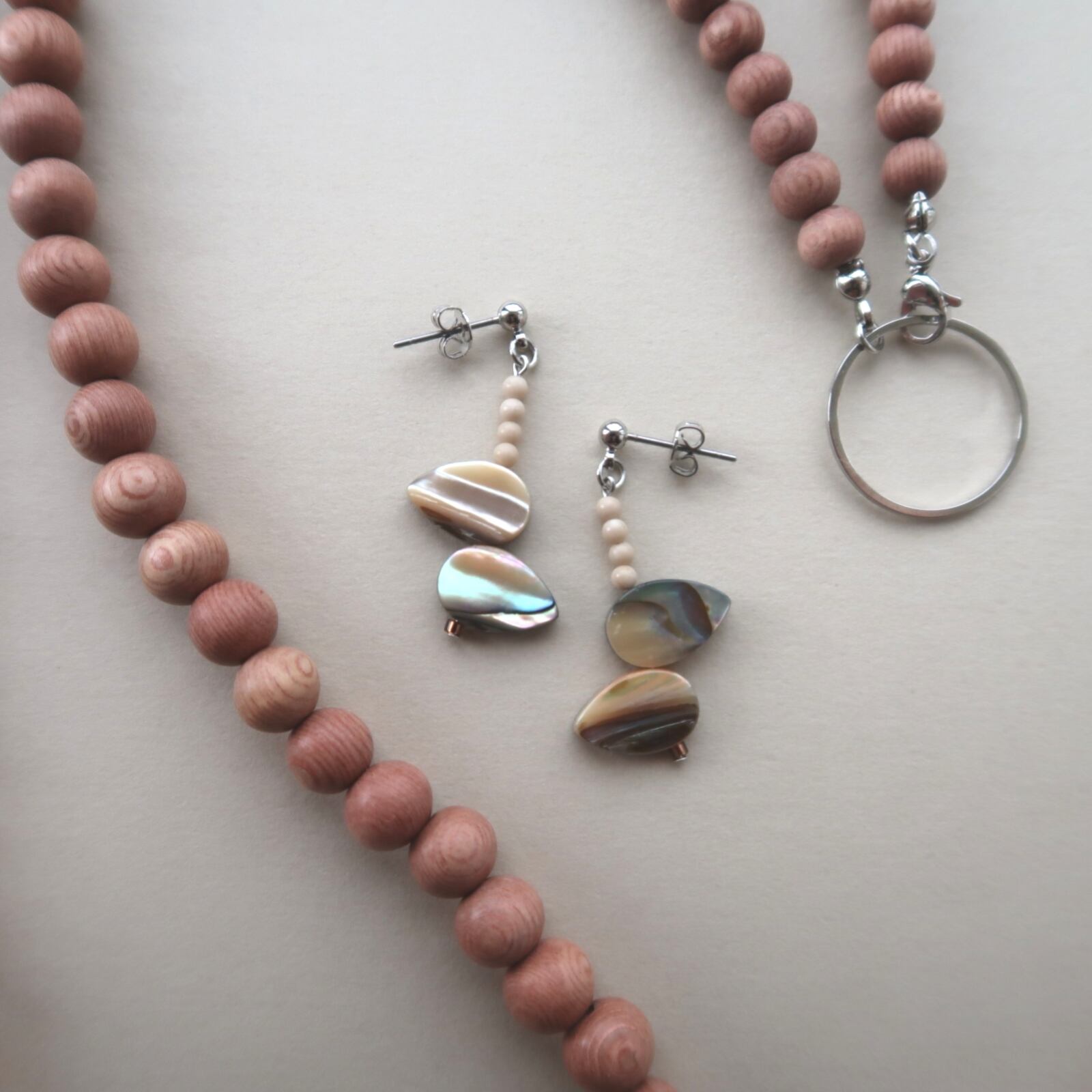 天然石リバーストーン、アバロンシェル(鮑)、MIYUKIビーズ(ガラス)